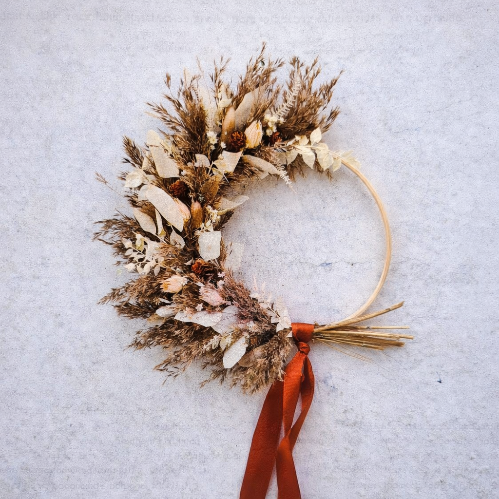 Tento styl květin a barev je základem pro váš vlastní věnec vytvořený na míru.
